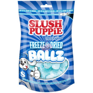 £3.50Slush Puppie Freeze Dried Balls are small, crunchy treats with a sweet, fruity flavour. They have a tangy, fizzy taste that melts in the mouth. -